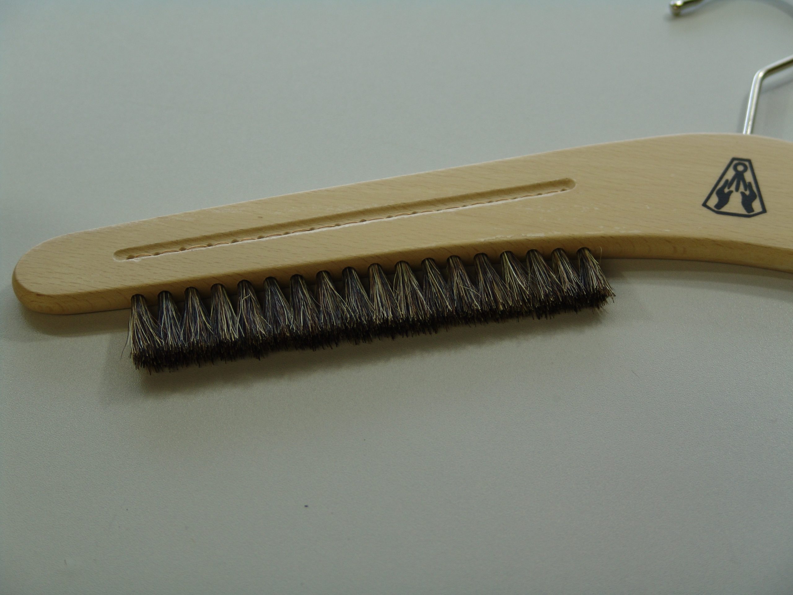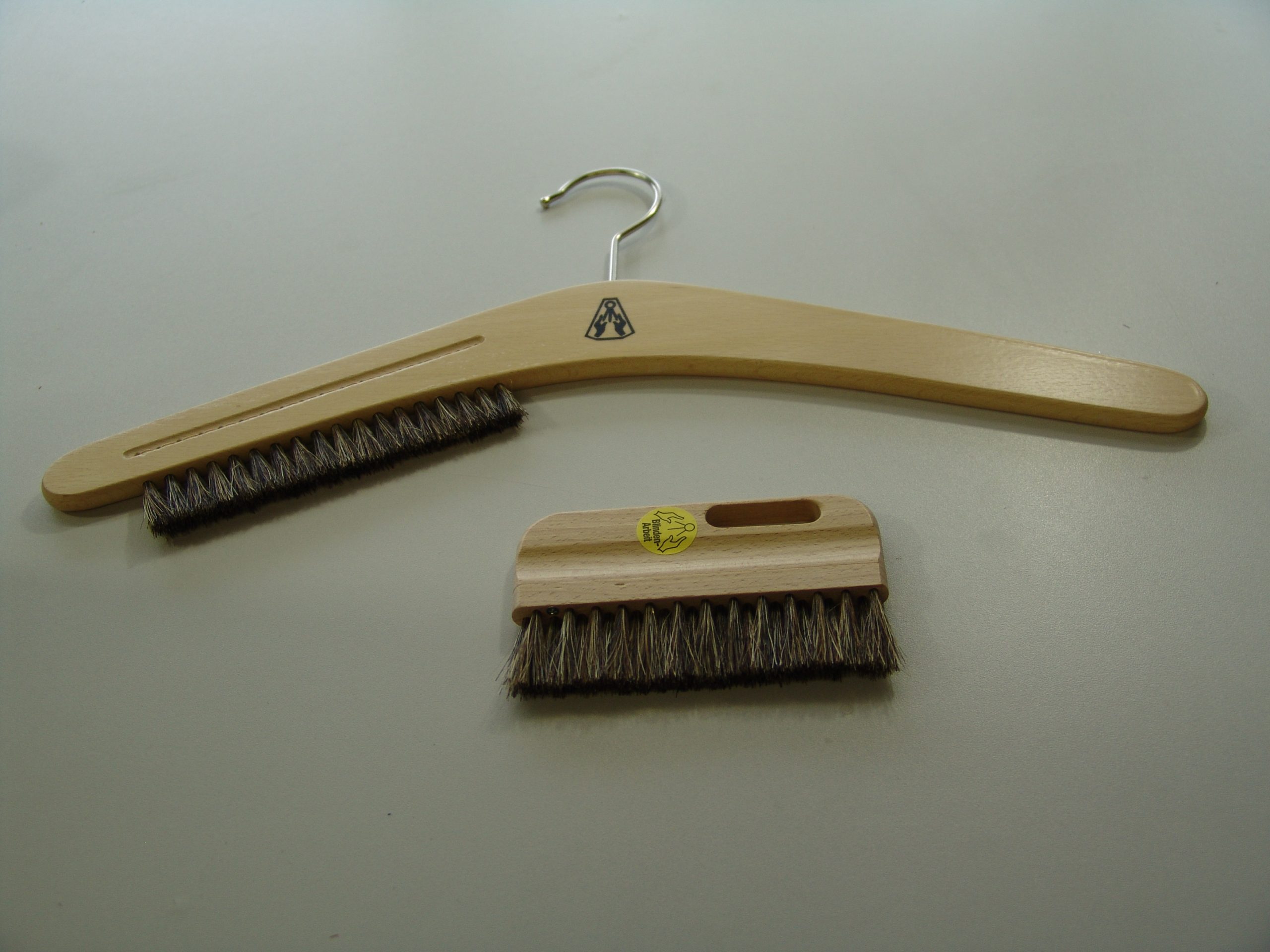 Ein weiteres Set bestehend aus einem Kleiderbügel mit Bürstenfunktion und einer schmalen Computerbürste.